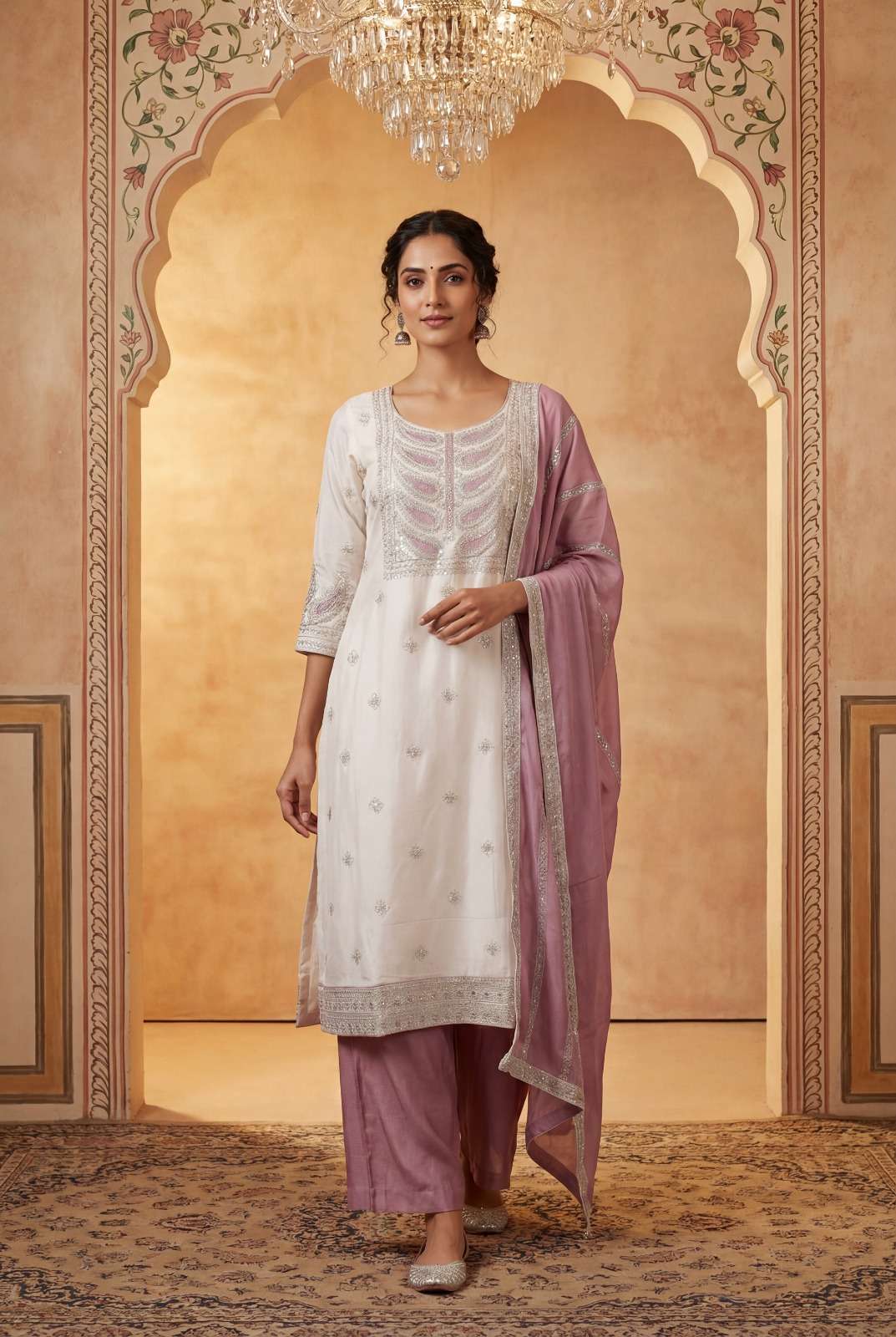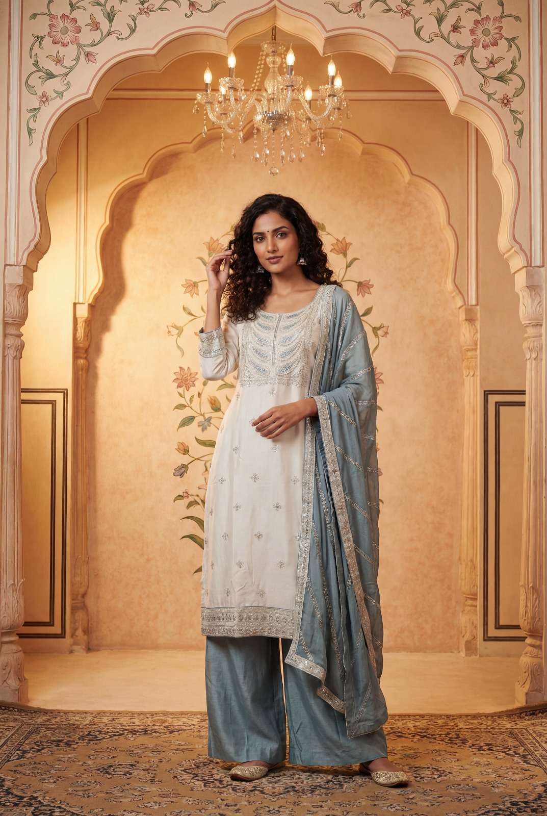 | Dupatta Fabric: | pure chiffon with beautiful emb & 4 side lace |