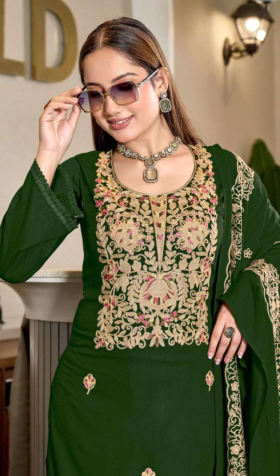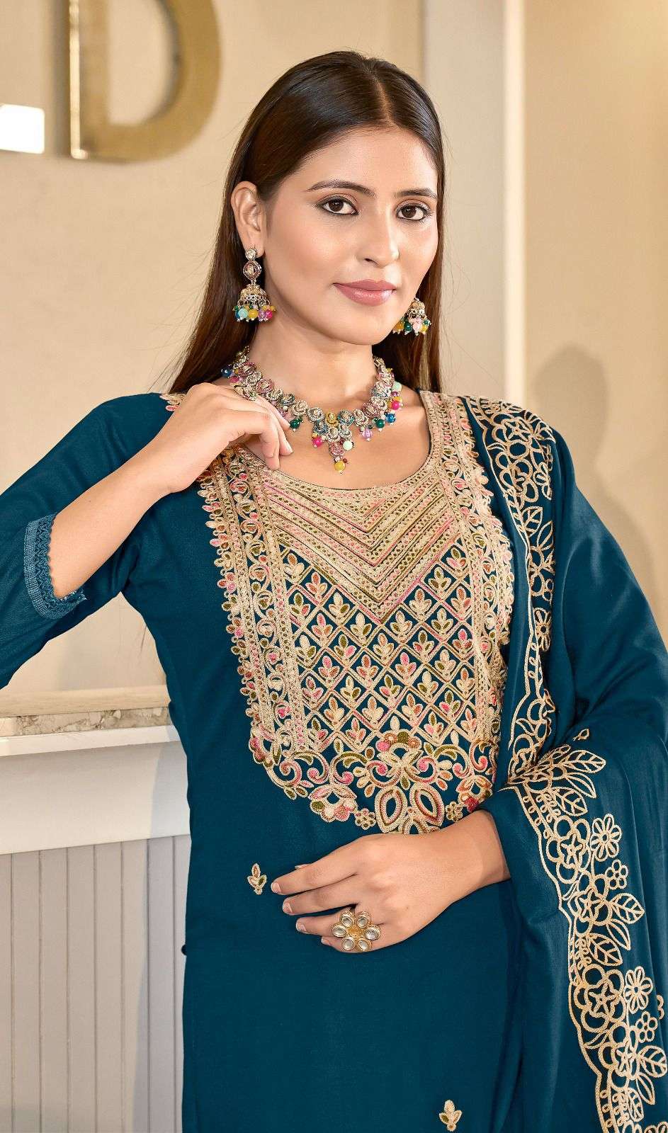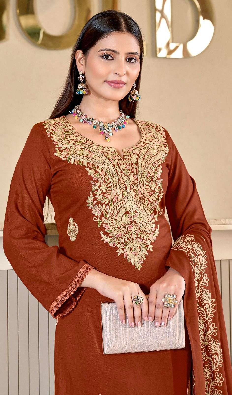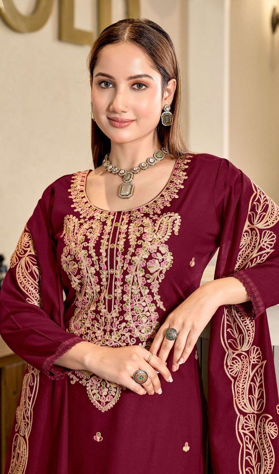 | Dupatta Fabric: | rayon dupatta with work and lace ( 2.25mtr)* |