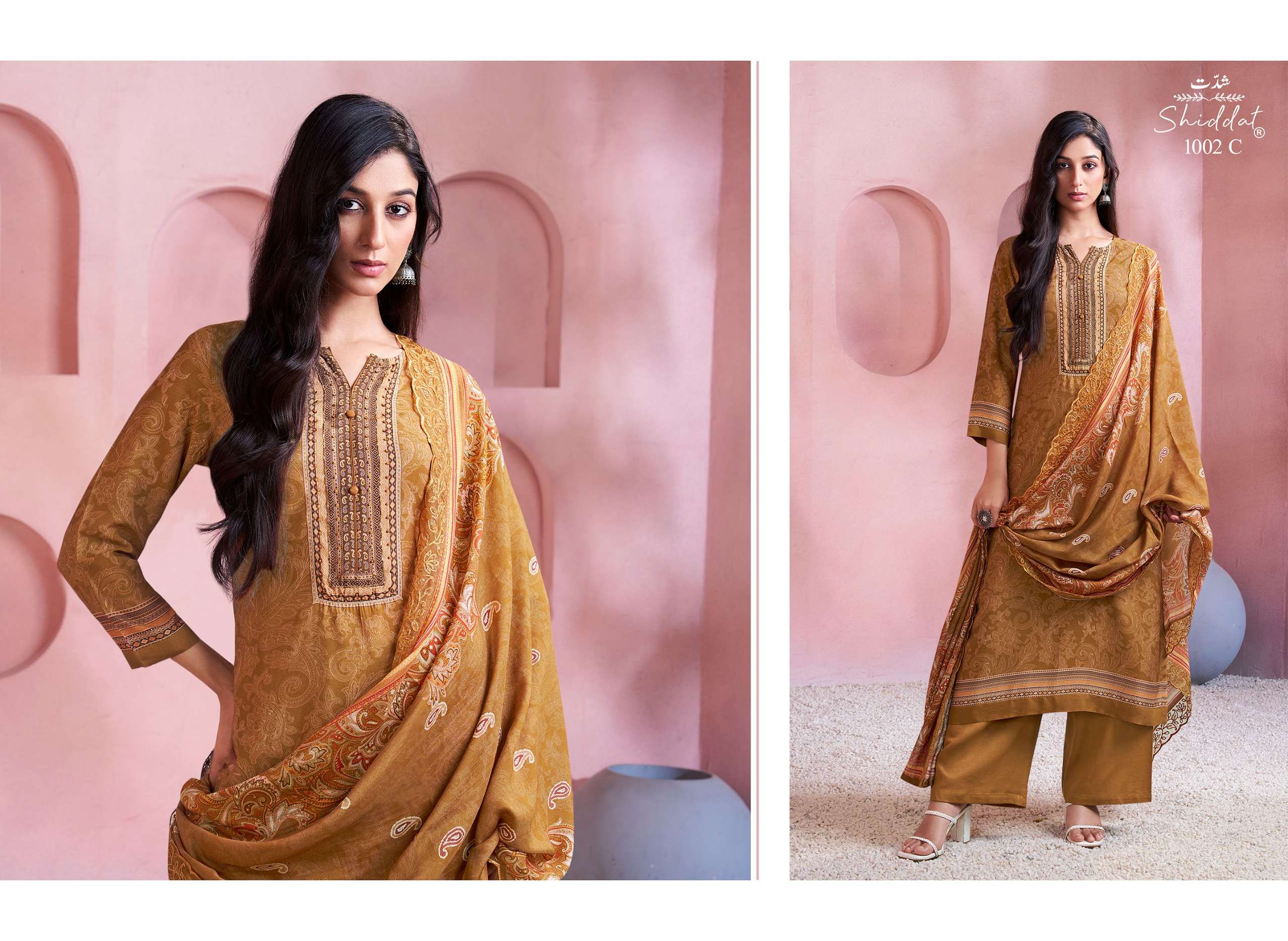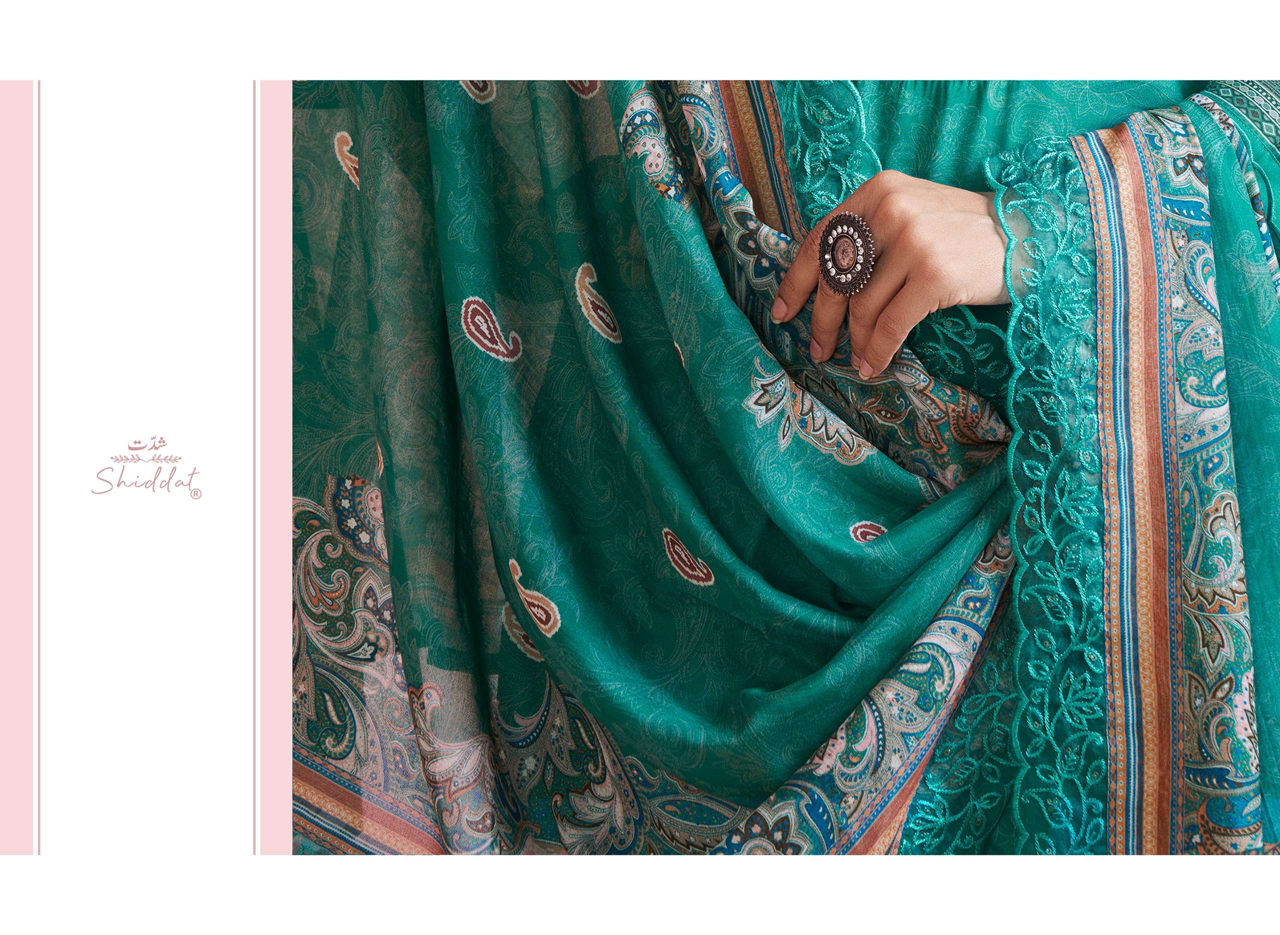 | Dupatta Fabric: | digital printed soft silk with scalloped organza embroidery. |