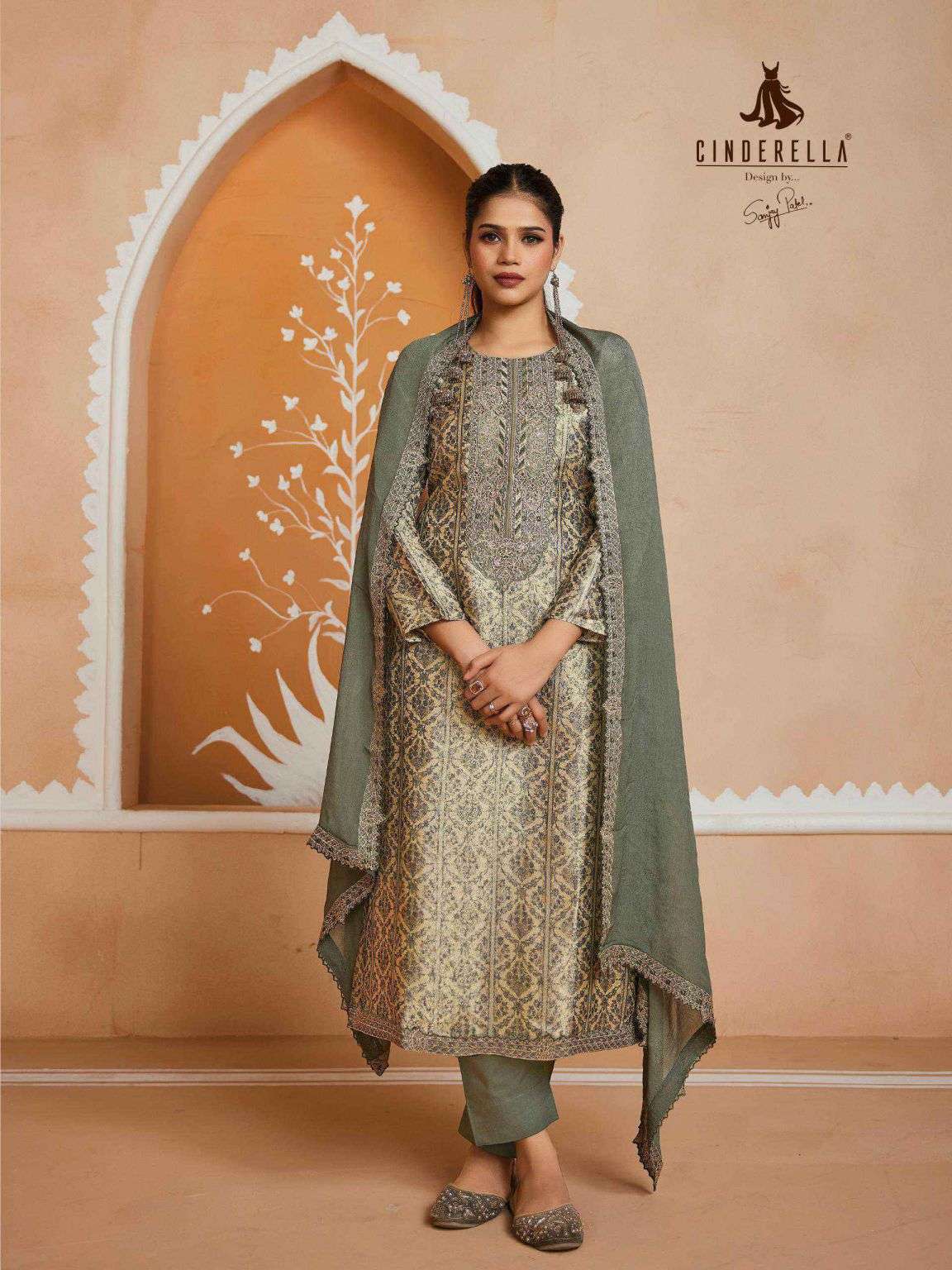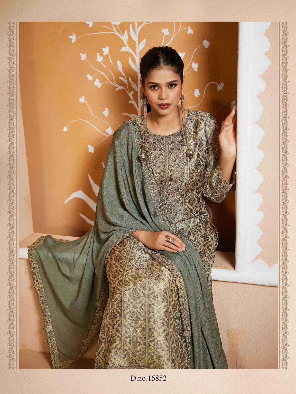| Top: | pure tanshvi silk jacquard position print with dalicate handwork & embroidery work* |