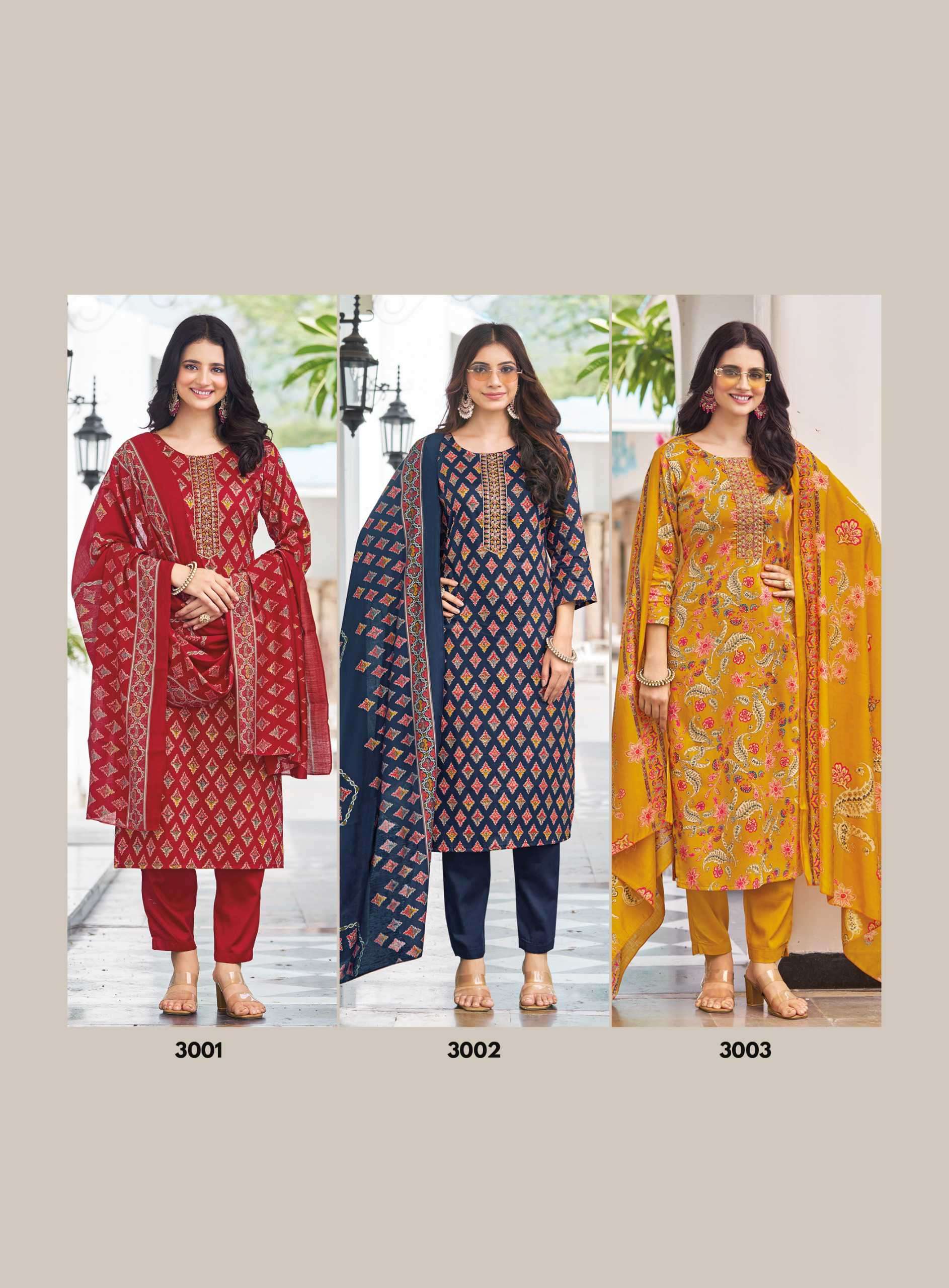 | Top: | top -jam satin discharge print with embroidery work |