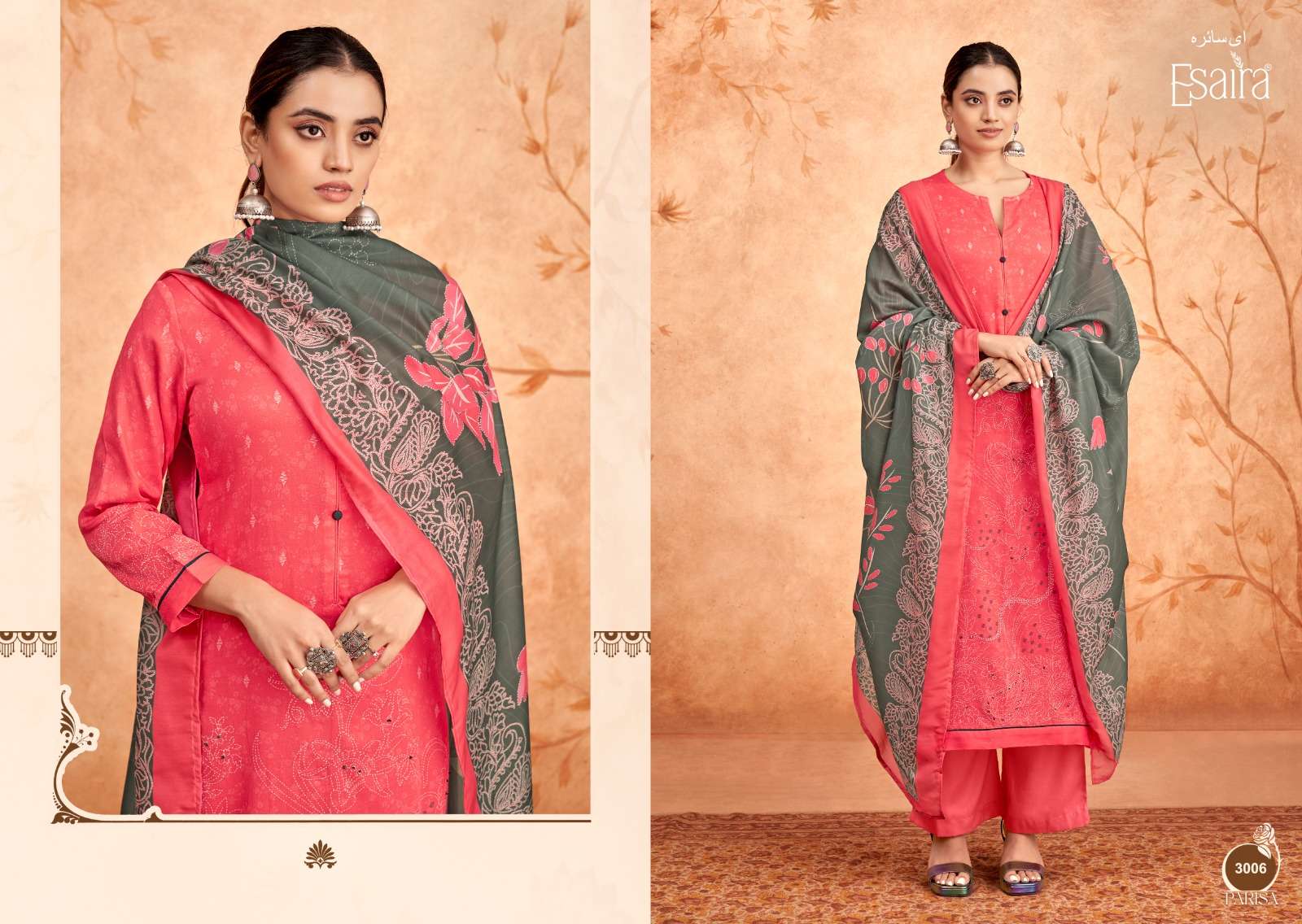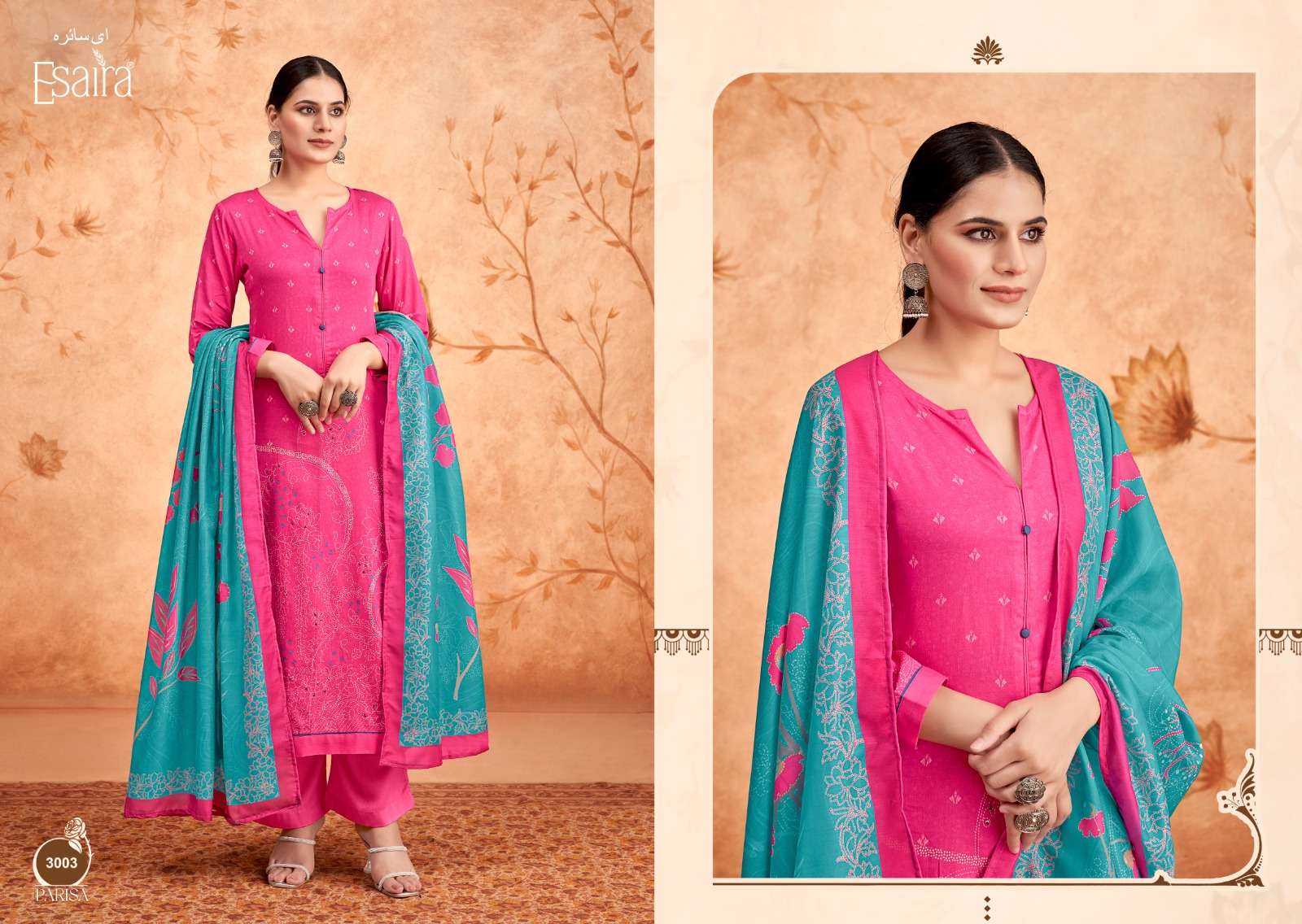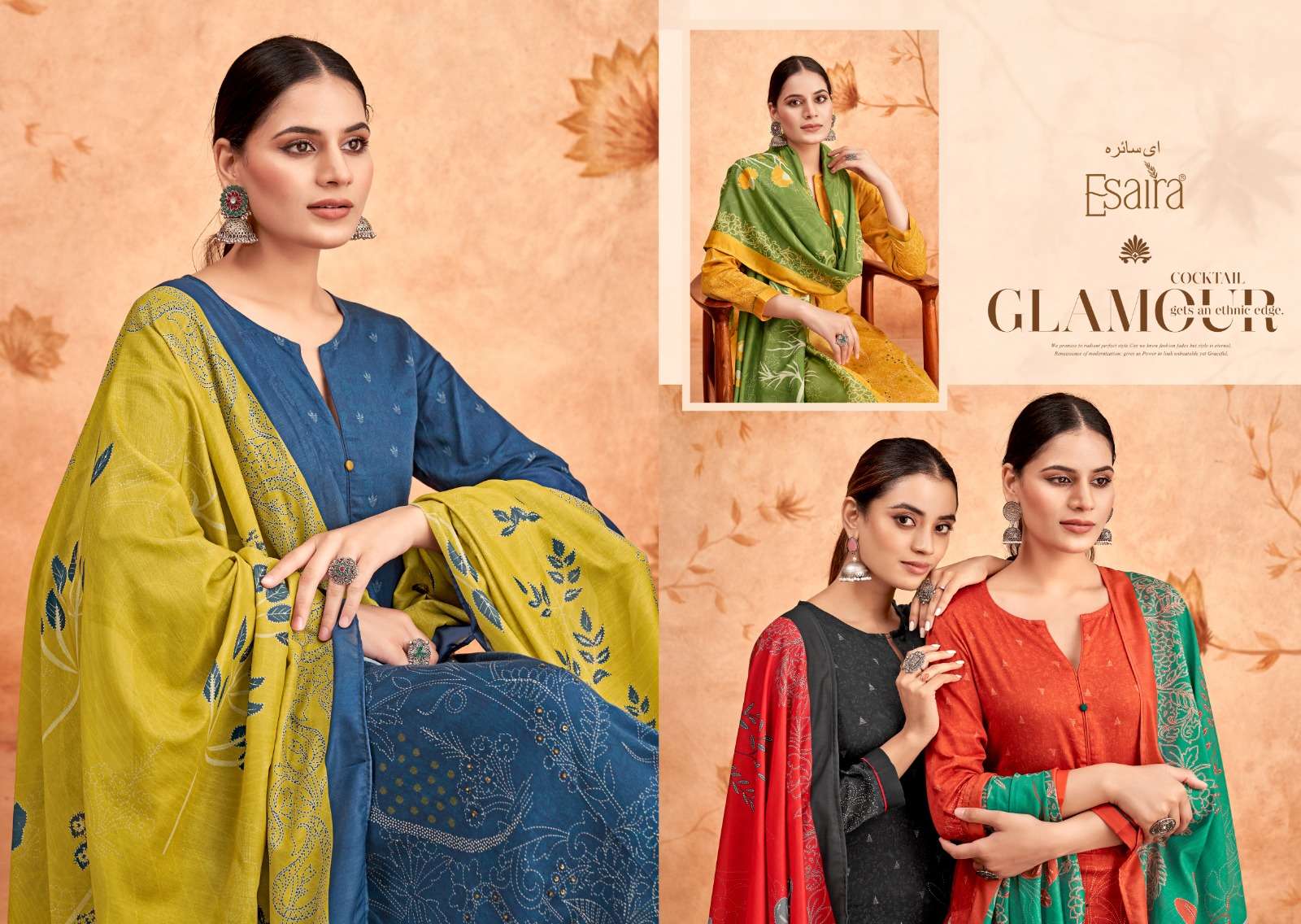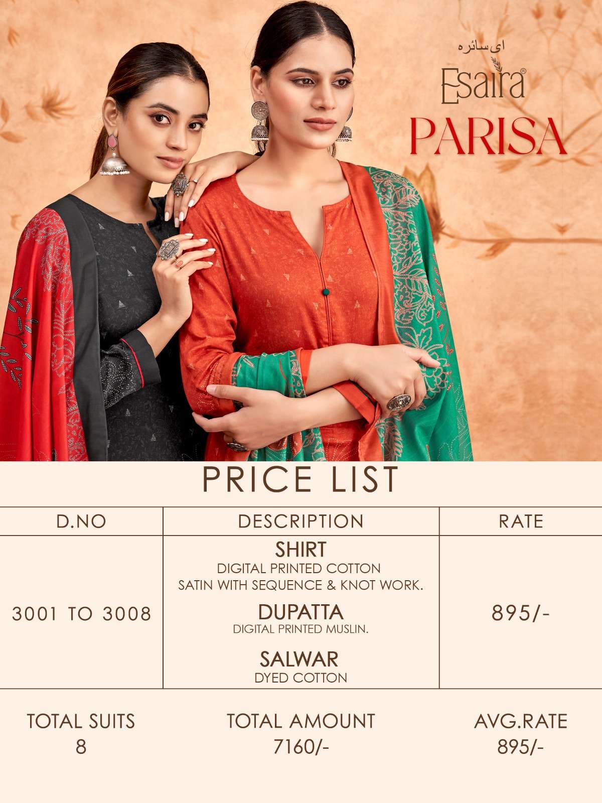 | Top: | digital printed cotton satin with sequence & knot work. |