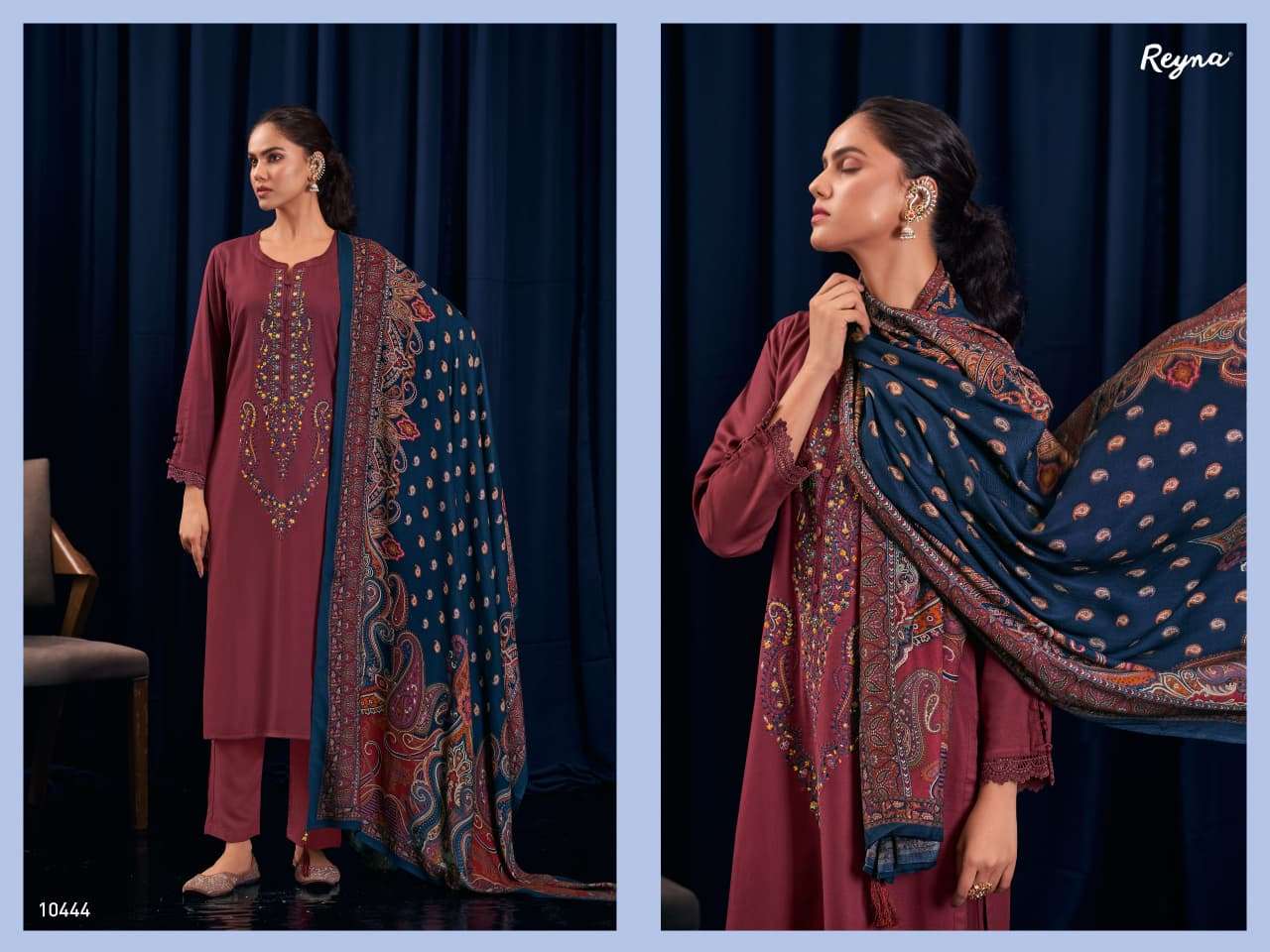 Top: | premium pure pashmina solid with heavy kashmiri embroidery and go lace for sleeves with contrast piping on daman. |