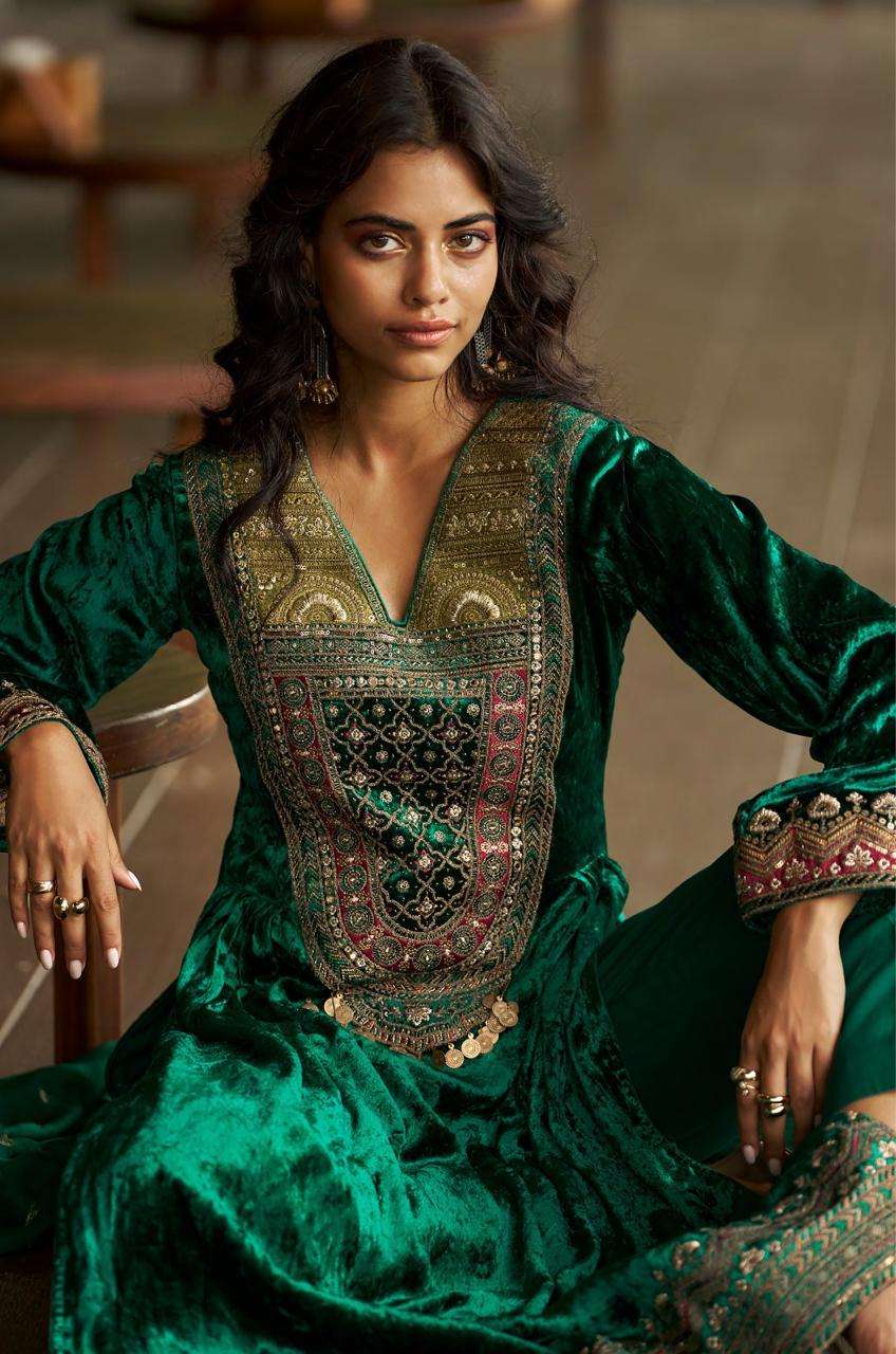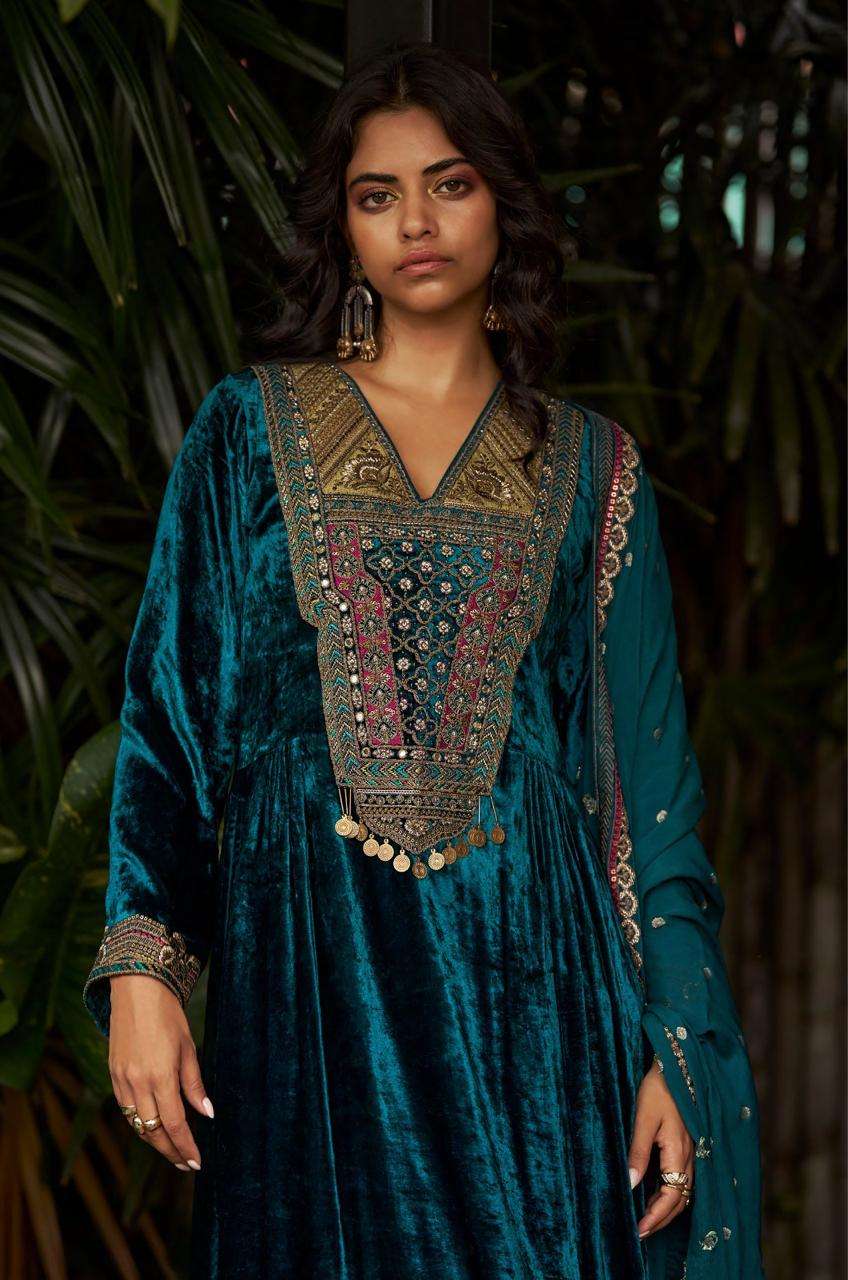 Top: | pure viscose velvet with fancy work with handwork. |