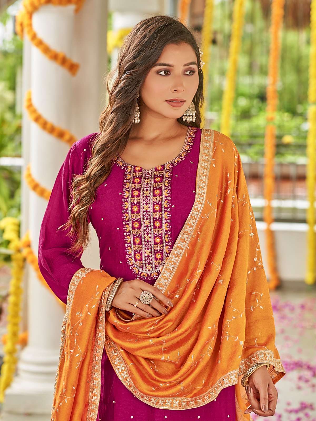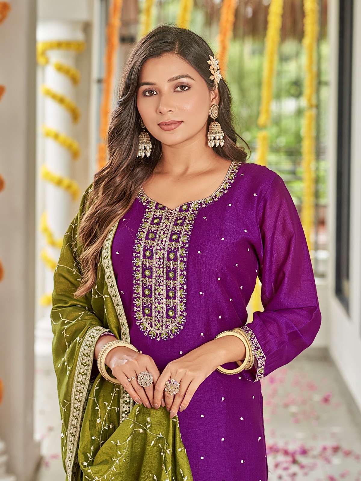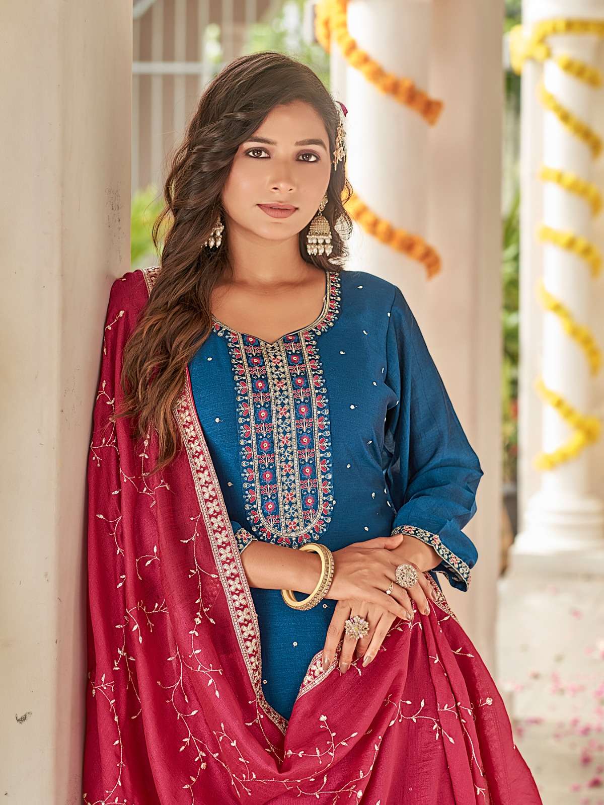 | Dupatta Fabric: | vichitra silk contrast fancy dupatta work |